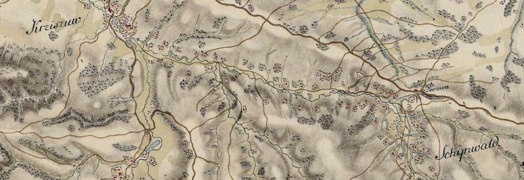 Czwartkowa krzyżówka oraz mapa gminy Skrzyszów z XVIII wieku