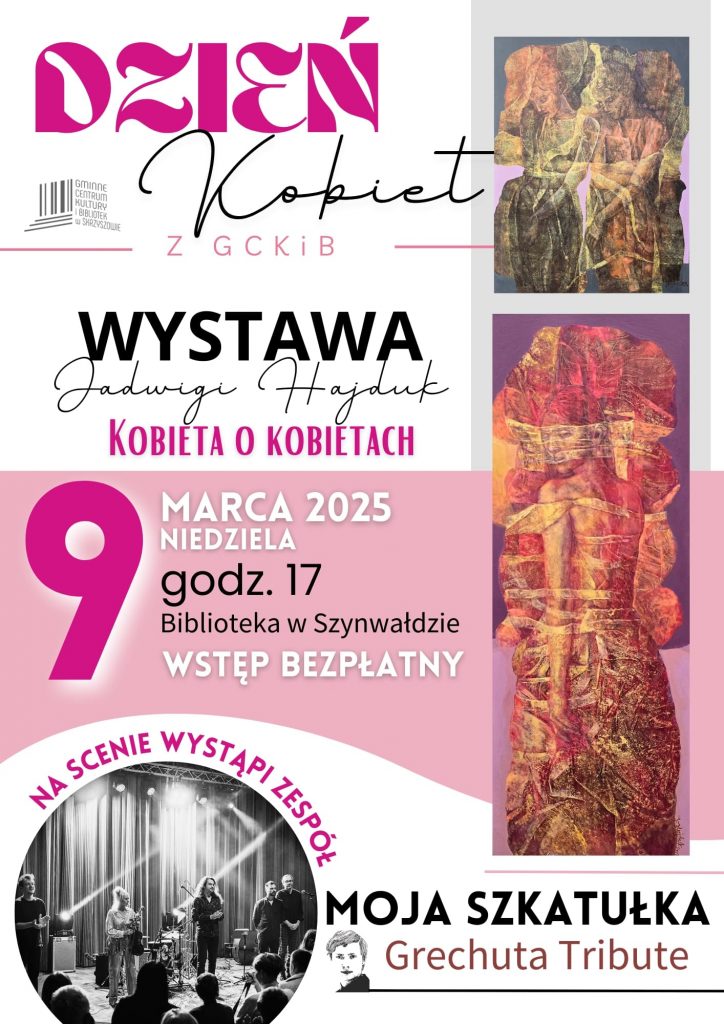 Już 9 marca GCKiB zaprasza na wyjątkowe wydarzenie. W bibliotece w Szynwałdzie odbędzie się Dzień Kobiet, w trakcie którego organizatorzy zaproszą na malarską i muzyczną ucztę.