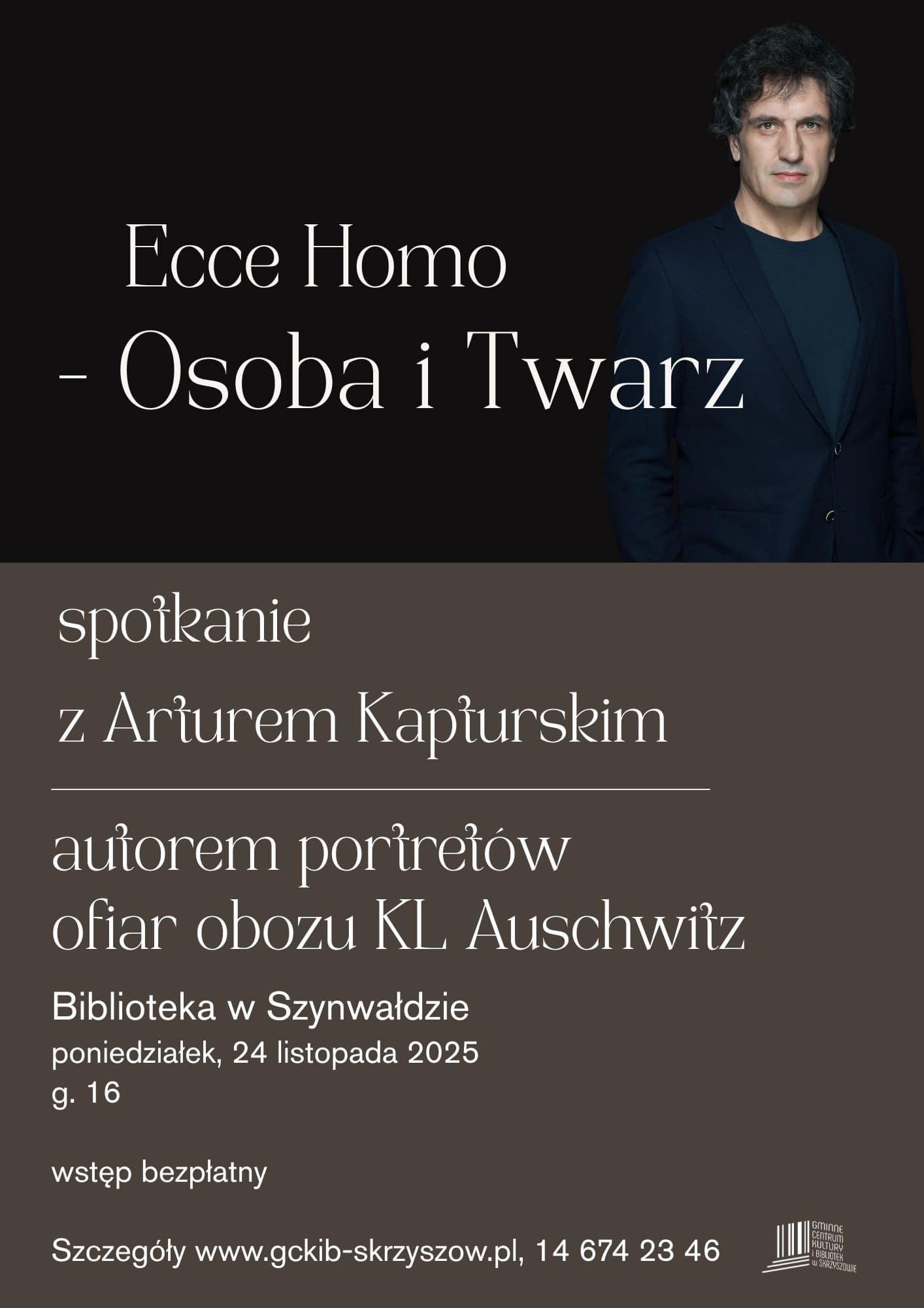 W poniedziałek 24 listopada 2025 r. w Bibliotece Publicznej w Szynwałdzie odbędzie się spotkanie z Arturem Kapturskim, autorem portretów ofiar obozu KL Auschwitz.