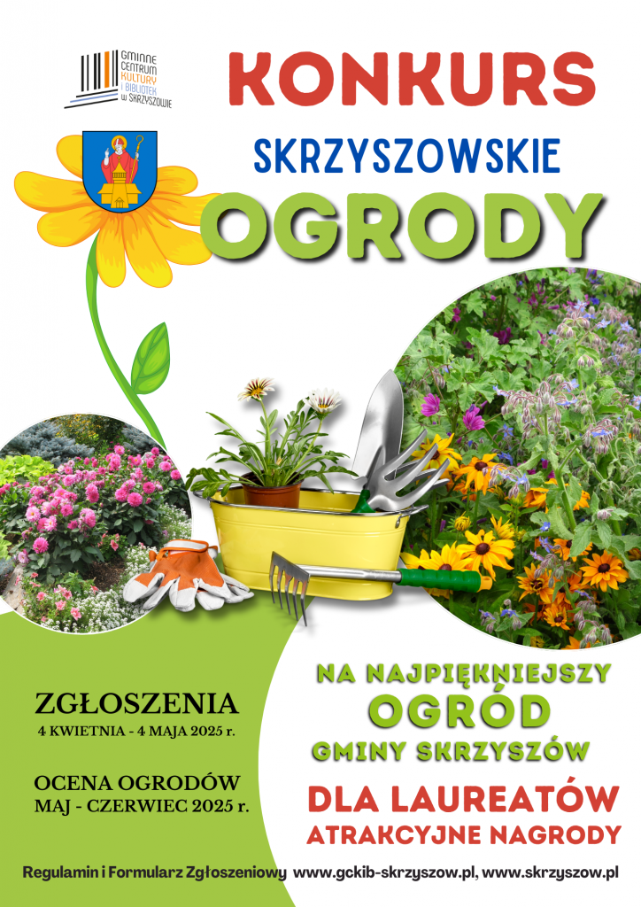 Konkurs Skrzyszowskie ogrody czas zacząć! Już po raz trzeci zapraszamy wszystkich mieszkańców gminy Skrzyszów do pochwalenia się swoim ogrodem. Zgłoszenia do 4 maja 2025 r.