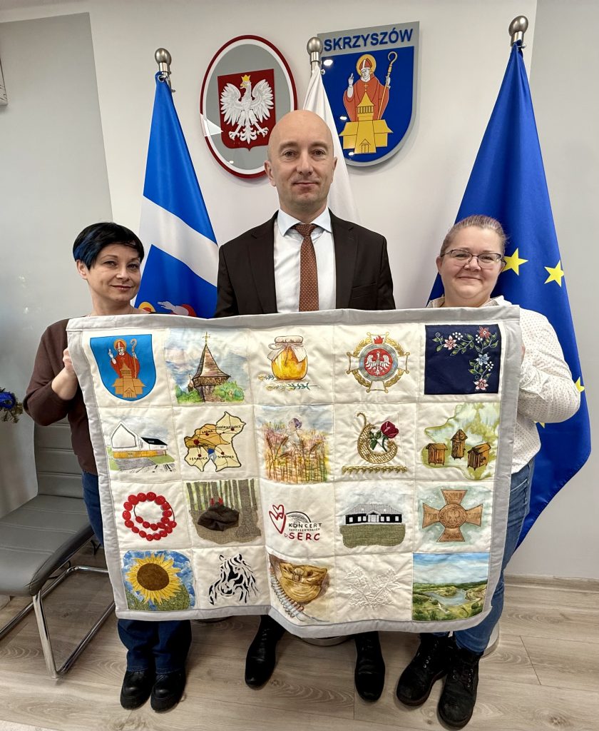 Grupa artystek z Tarnowa przygotowała patchwork, tj. rękodzieło polegające na zszywaniu ze sobą małych kawałków tkaniny w celu stworzenia większej, spójnej kompozycji. Dzięki połączeniu różnych stylów i technik, m.in. malarstwa, haftu ręcznego, przeniesienia zdjęć na tkaninę, wprowadzenia dekoracyjnych form (np. kwiatów), pikowania – powstał patchwork z charakterystycznymi dla gminy Skrzyszów miejscami i przedmiotami.