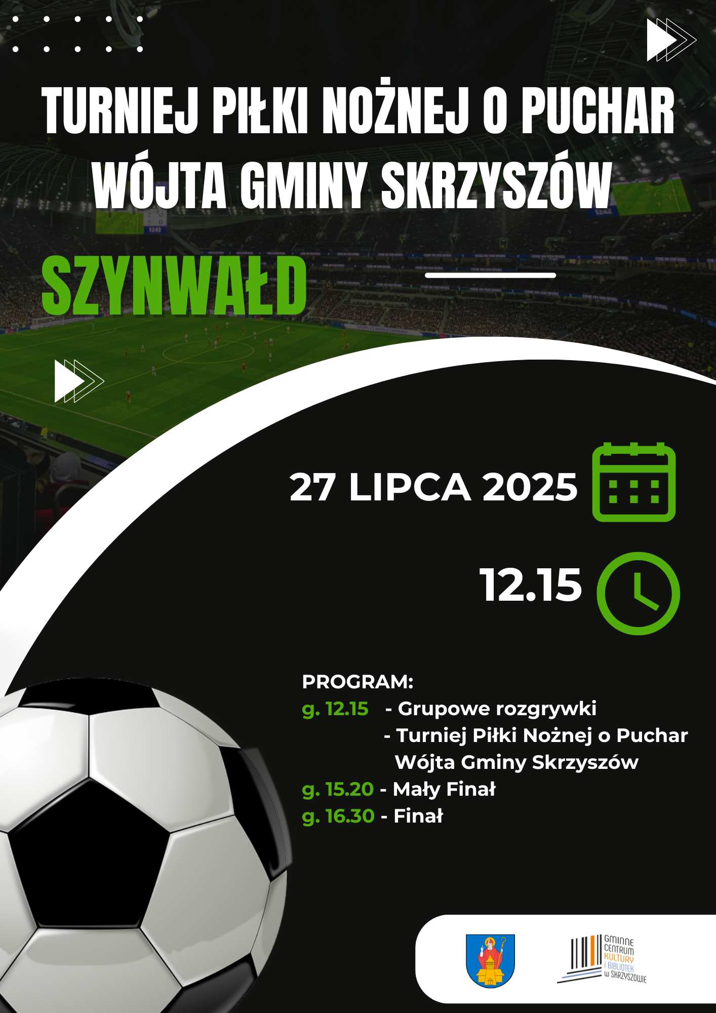 Zapraszamy wszystkich sympatyków piłki nożnej i nie tylko do śledzenia zmagań zawodników w turnieju „O Puchar Wójta Gminy Skrzyszów”.