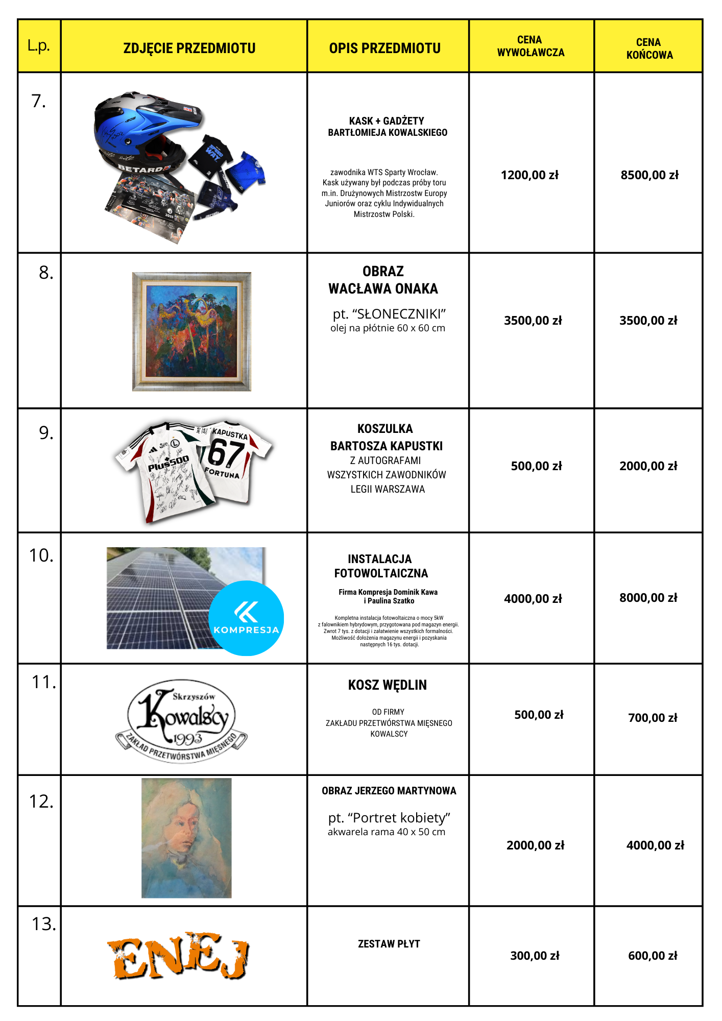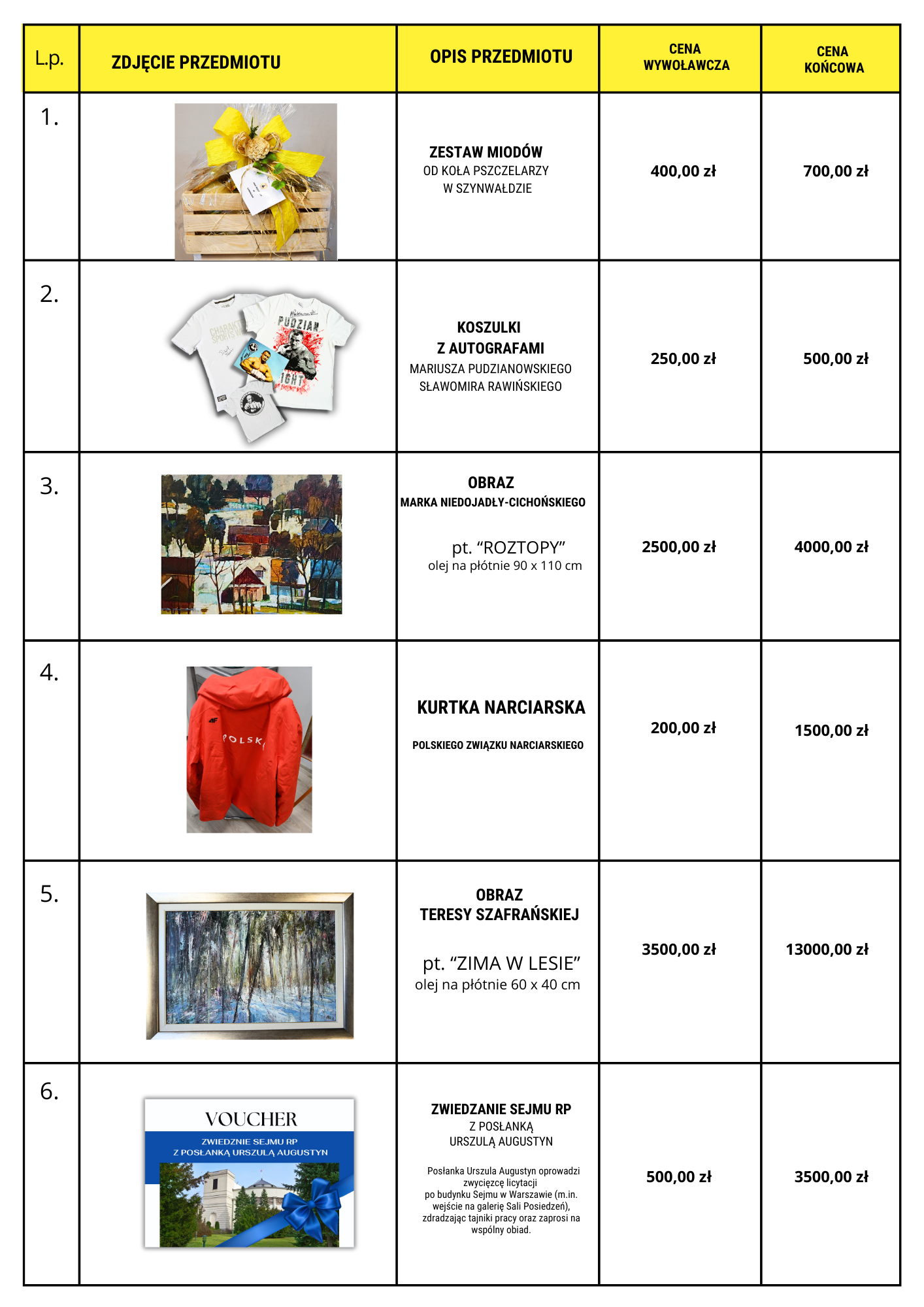 PRZEDMIOTY WYLICYTOWANE W TRAKCIE XIII KONCERTU SKRZYSZOWSKICH SERC