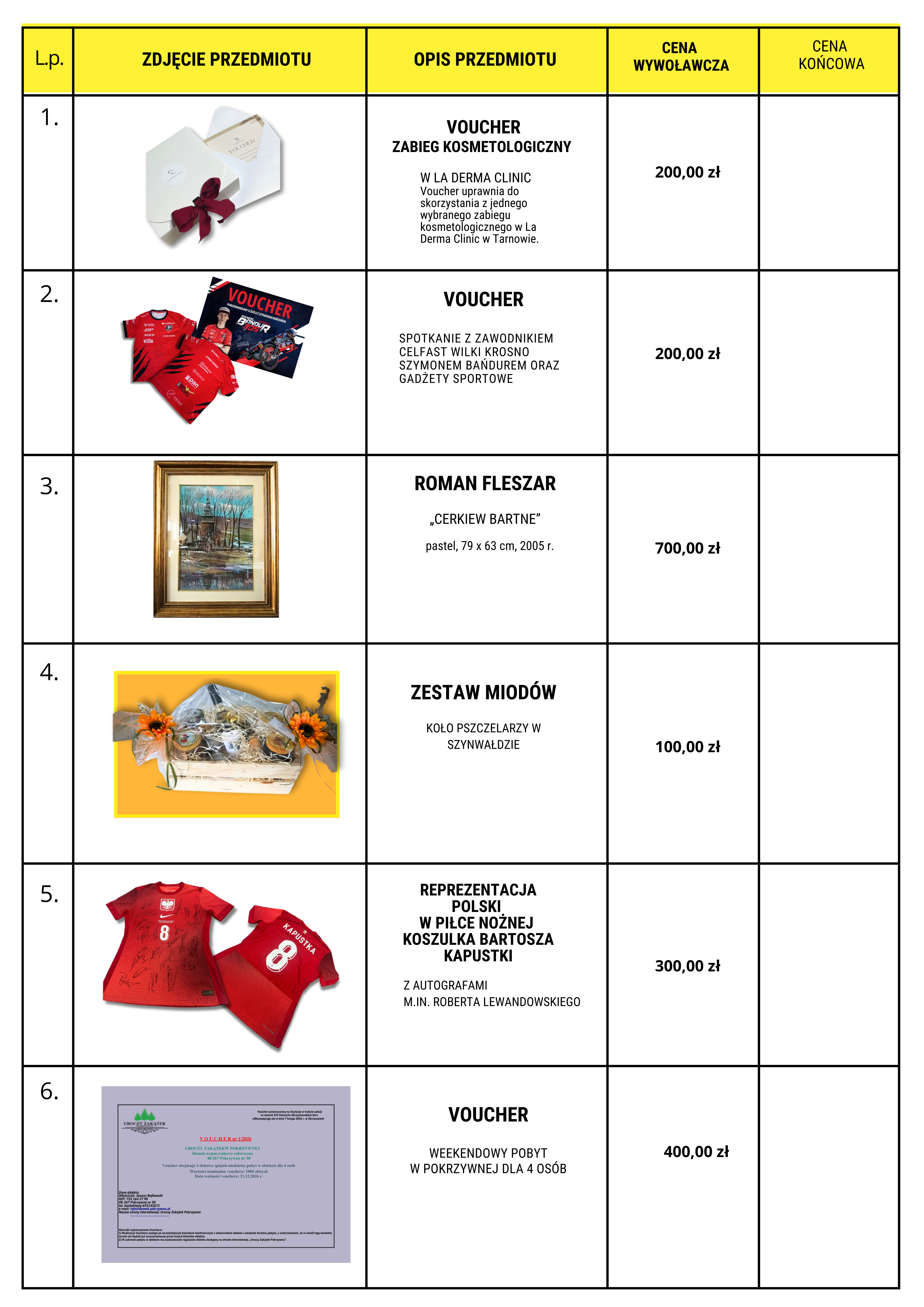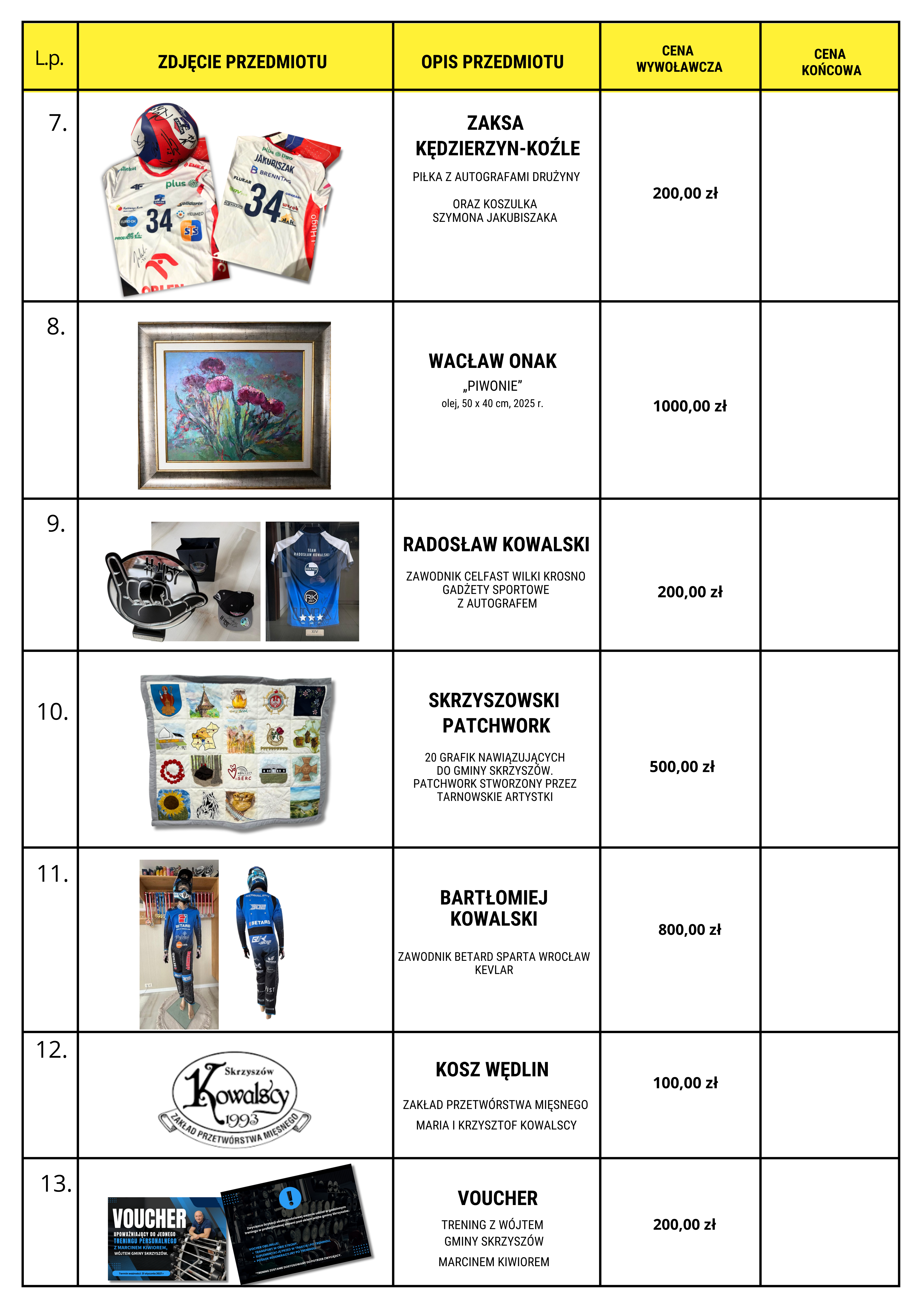 XIV Koncert Skrzyszowskich Serc – przedmioty do licytacji