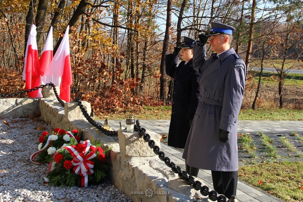 Jednocześnie druga część obchodów tego święta miała miejsce pod „Pomnikiem rozstrzelanych przez hitlerowców w latach 1939-1945” w Pogórskiej Woli, gdzie delegacje złożyły wiązanki. Stąd również wystartowała Sztafeta Niepodległościowa, w której udział wzięli przedstawiciele poszczególnych sołectw w naszej gminie. Łącznie przebiegli oni dystans ponad 3,5 km. Bieg sztafetowy zakończył się pod pomnikiem „Poległych za Ojczyznę” w Pogórskiej Woli. Na zakończenie, uczestnicy sztafety otrzymali z rąk Sekretarz Gminy Skrzyszów Cecylii Andrusiewicz oraz Przewodniczącego Rady Gminy Skrzyszów Marcina Tryby pamiątkowe dyplomy i medale.